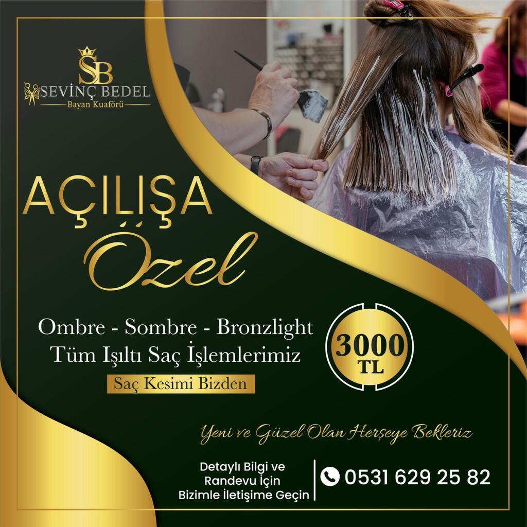 Sevinç Bedel Bayan Kuaförü olarak, yıllardır kadınların kendilerini özel ve özgüvenli hissetmeleri için tutkuyla çalışıyoruz. Her biri alanında uzman ekibimizle; saç kesiminden renklendirmeye, ombre ve balyaj uygulamalarından özel gün saç tasarımlarına kadar her detayda size kişisel dokunuşlar sunuyoruz.